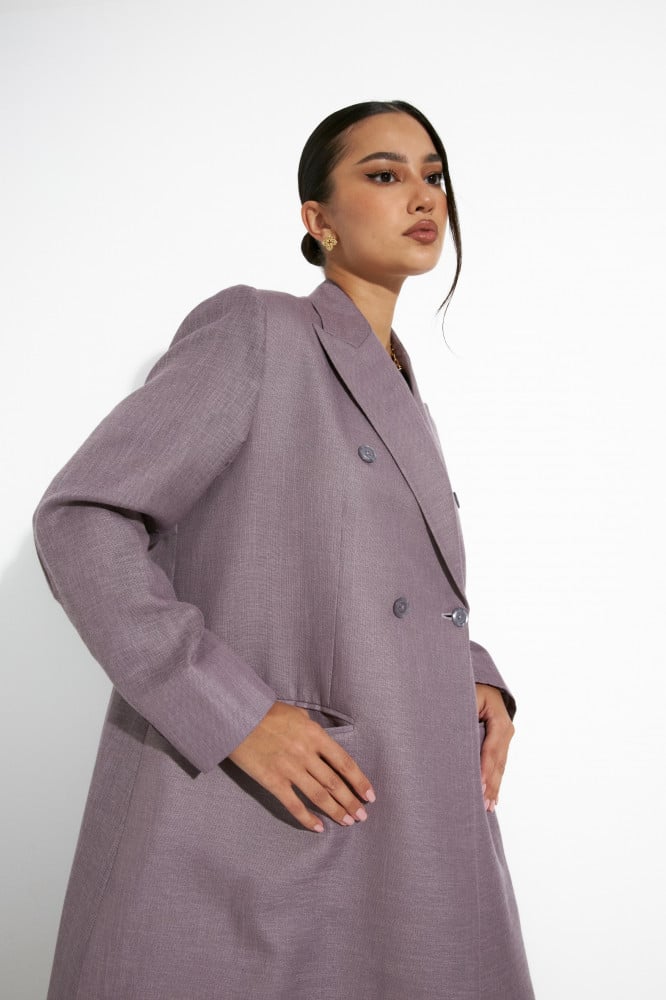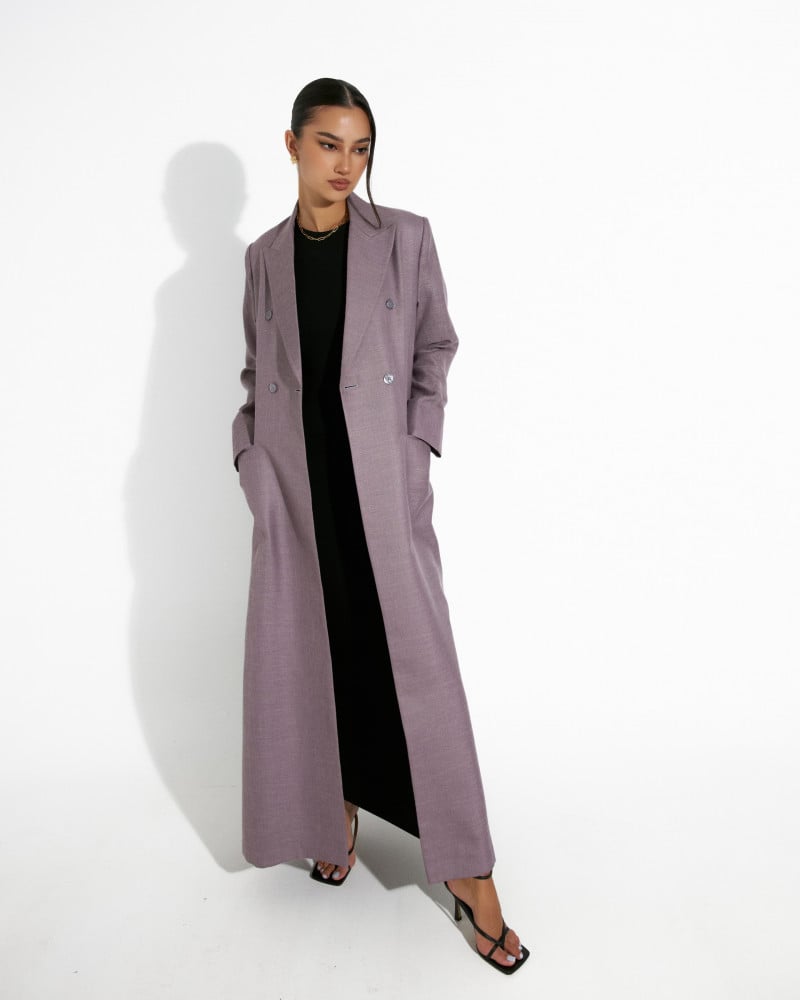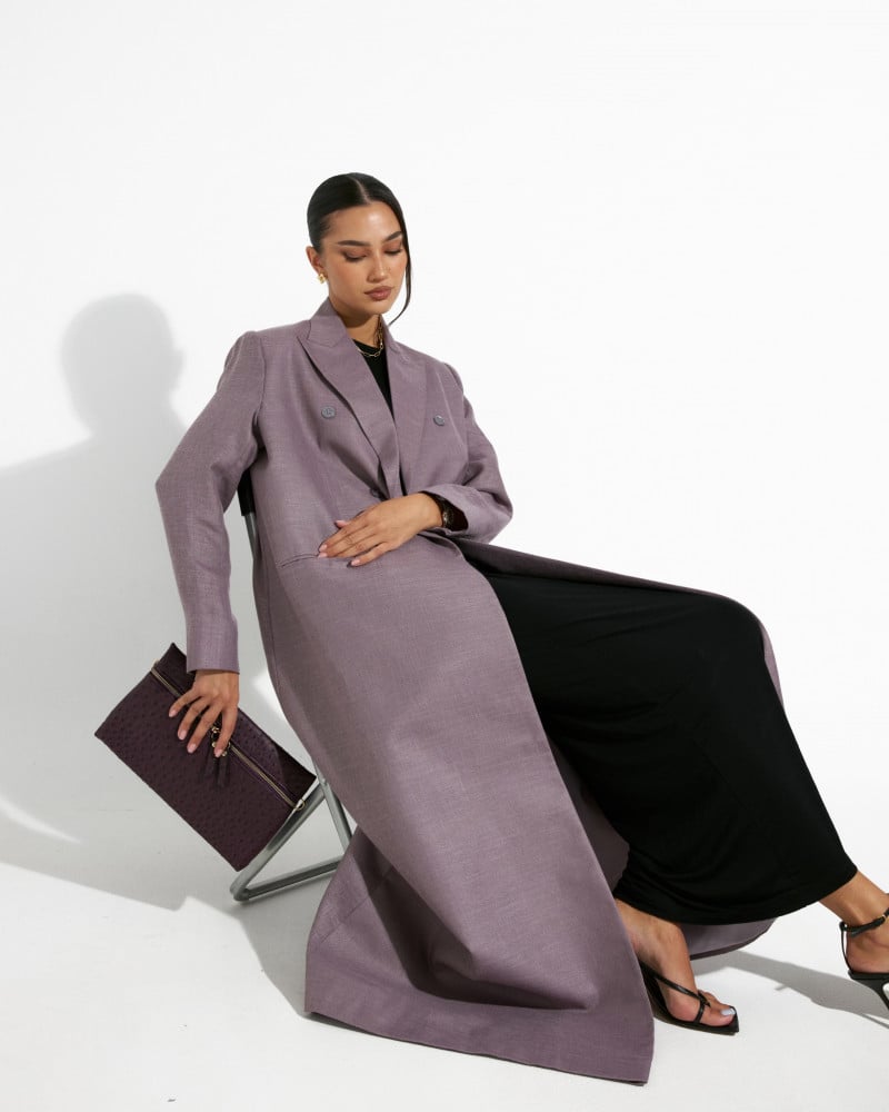 تعتبر عباية اللينن باللون الموف الفاتح خيارًا مثاليًا للمرأة العصرية التي تبحث عن الأناقة والراحة في الوقت نفسه فهي تضيف لمسة من الأنوثة والأناقة إلى إطلالتك بكل سهولة وأناقة.